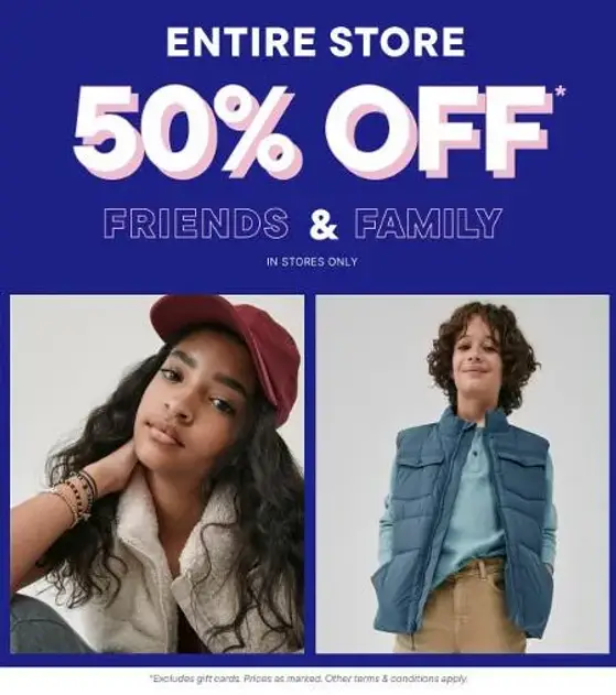 Shop in store and get 50% off everything.
