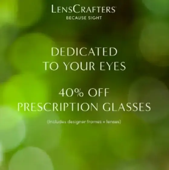 Enjoy 40% off prescription glasses from our wide range of designer styles at LensCrafters.